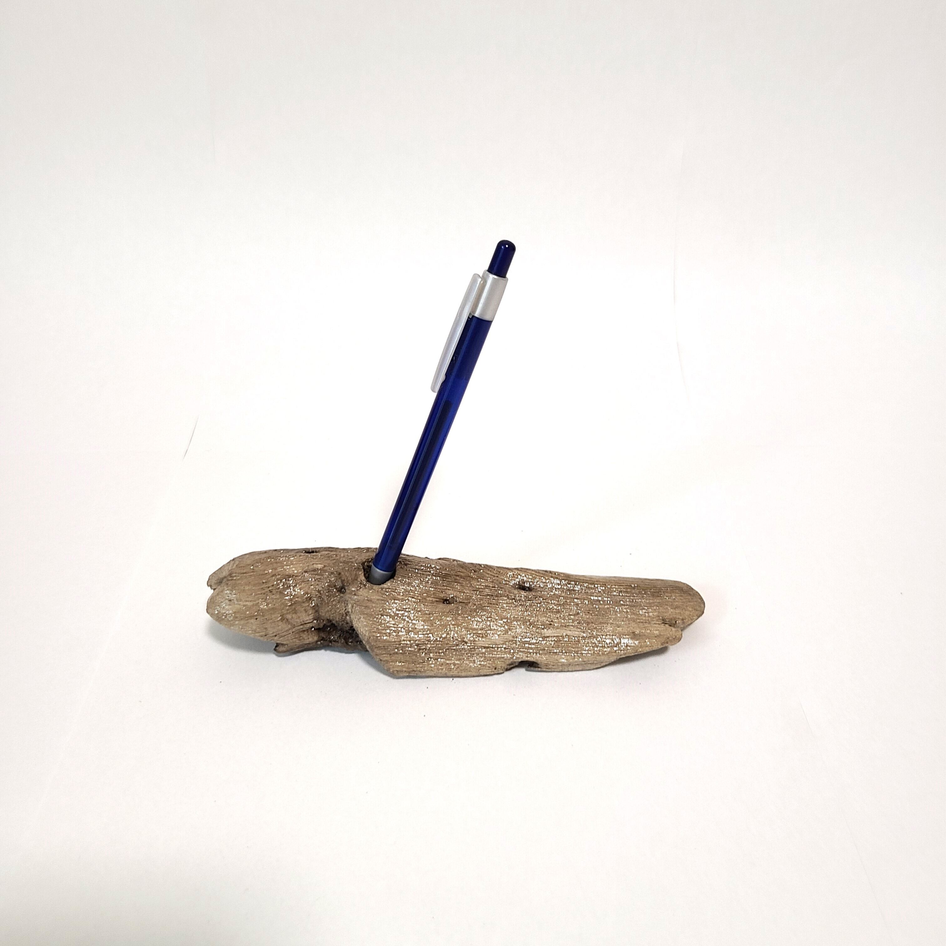 流木製のペン立てにペンを挿すことで